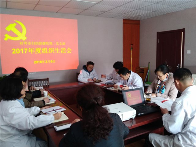 按照中共安徽省委组织部《关于组织召开2017年度组织生活会和开展民主评议党员的通知》及我院相关文件精神要求,蚌埠市妇幼保健院第二党支部于2018年3月9日下午14:00组织党员召开了组织生活会和民主评议党员,应到会党员11人,实到会10人,病休1人。院党总支副书记王清同志参加会议并讲话。