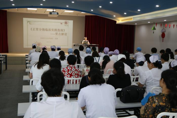 随着人民群众对于分娩有了更加理性的认识,不再盲目选择剖宫产,自然分娩理念的也悄然改变,这就带动了更多的生理分娩照护需求。中国妇幼保健协会助产士分会和促进自然分娩专业委员会组织专家参考世界卫生组织的《临产、分娩、新生儿保健指南》(2015年版),制订了《中国正常分娩临床实践指南》,为了提高我院助产人员在正常分娩临床实践中助产技术,保障母婴安全,提高正常分娩率和产妇生活质量。9月19日下午3:00,在院八楼学术报告厅举办了《中国正常分娩临床实践指南》要点解读培训,由护理部主任、主管助产士杨静主讲,共计100余人参加培训。